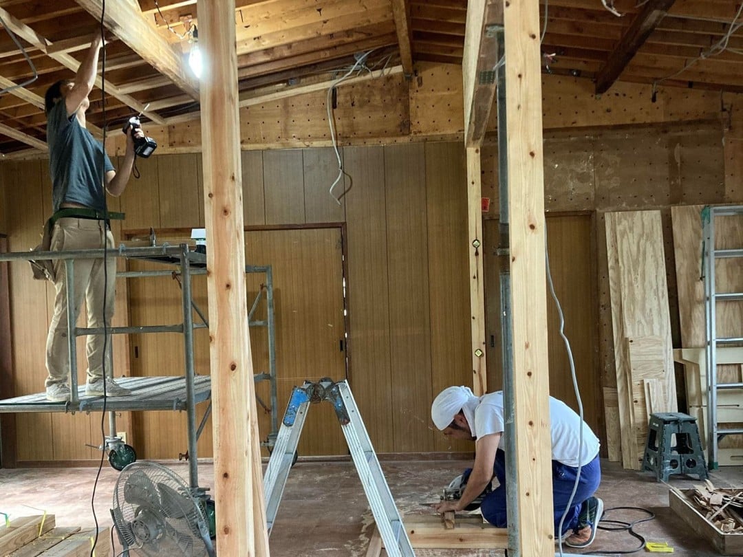 工房の隣には古い平屋があります。 今まで自分たちで少しずつ手を入れながら、倉庫や事務所として使っていました。 しかし、水まわりや、天井を抜いたりすることはハードルが高く、ARTONの山口君に依頼して本格的に改装をすることにしました。